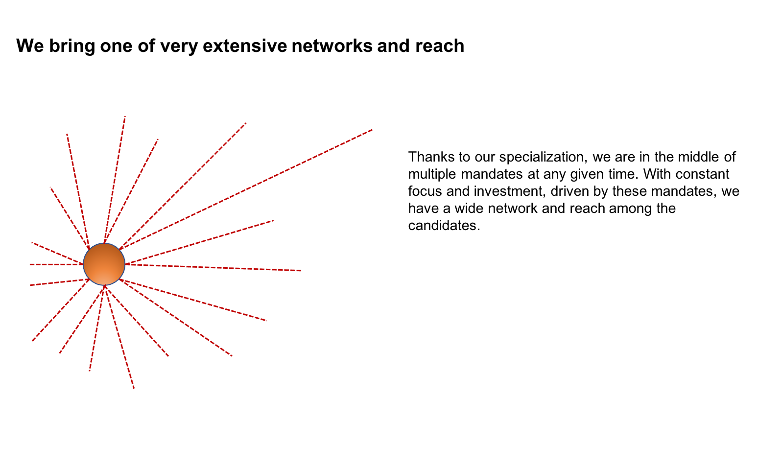 Thanks to our specialization, our network is wide within each specialization and the quality of the conversation with each candidate is deep. As a result, we are typically able to close mandates with just 3 profiles – even where we share a larger slate to give choice and comfort to the client, by the time they have seen the first 3, they are confident that they have the right pick. When you work with us, you get to focus on your business instead of spending countless hours on hiring a new leader.